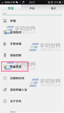 打開OPPO Find7手機【設置】在【常規】欄目中找到並點擊【電量管理】,將【省電模式】開啟後,點擊【省電設置】。(如下圖)