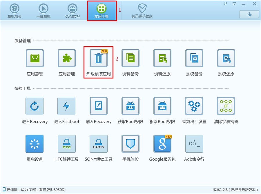 3) 選擇“實用工具”下的”卸載預裝應用”
