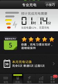 打開金山電池醫生,就能看見大大的省電優化字樣,直指省電工具的本質,容易給人留下好印象。下拉即可出現硬件開關,非常方便,而且它的智能充電頁面設計的很華麗、直觀。此外,它的二級乃至三級菜單較多,集合在了一起,使得它集多種省電功能於一身而界面卻不顯得凌亂。