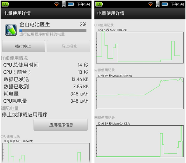 運行約11分鐘後,發現電池醫生對CPU的占用出奇的低,耗電量竟然只有348μAh,相信這點耗電幾乎不會讓用戶有所感 知,相比於節省下來的電,簡直是九牛一毛。