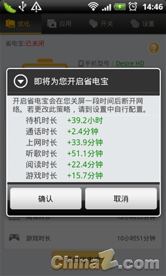 開啟省電寶會在用戶關屏一段時間後斷開網絡,並能高級設置裡,設置斷網時間,以此達到省電目的。