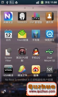 4、Process manager: 可以一鍵關閉運行的軟件,首先要進入程序設置忽略列表,如桌面、輸入法等,可以顯示剩余內存,該版本雖老,但是可以顯示剩余ram,比新版本好,用了他,可以保持手機1禮拜不重啟而不影響運行速度,他和autostart配合,可以讓你手機永葆青春!!