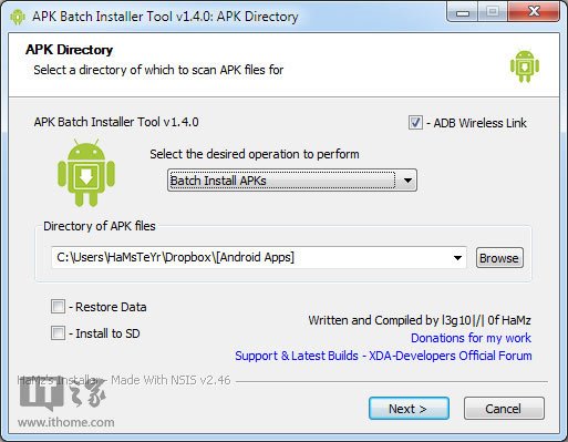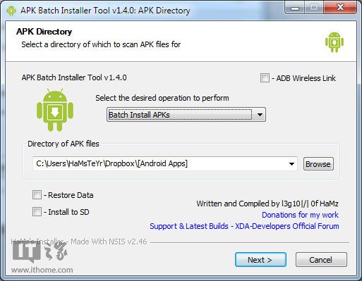 APK Batch Installer是由國外安卓愛好者hamsteyr(訪問作者主頁)制作的,設計的理念是簡化安卓APK應用安裝和備份流程,讓安卓黨放心去刷ROM。
