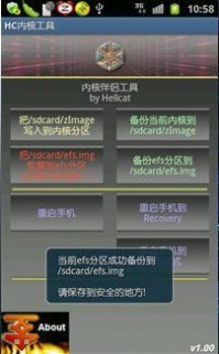 請先ROOT才能訪問系統文件,使用HC-Ktools.APK工具,現在安裝到手機上,然後使用裡面的備份工具。