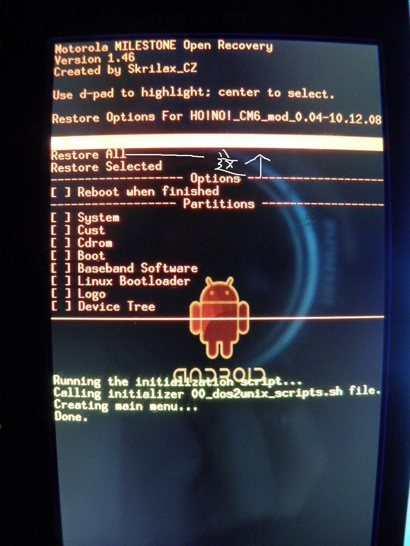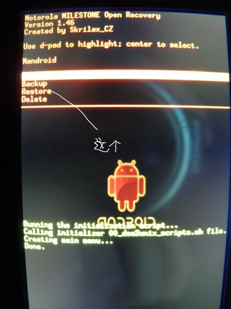 2、進入了Nandroid菜單,可以看到有四個選項,刷機或者恢復備份的話選擇Restore。