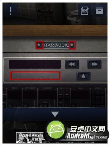 2、點擊桌子音響下的CD播放器,這時候金幣可以當做螺絲來用,將STAR AUDIO的銘牌上的兩個螺絲卸下,得到第一顆星星。可以將唱片插入CD中,可以得到歌名字母對應的數字。(小編認為這邊有點雞肋,完全不需要,桌子上有台電話,對著電話就可以知道對應的數字了。)