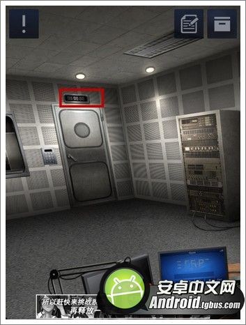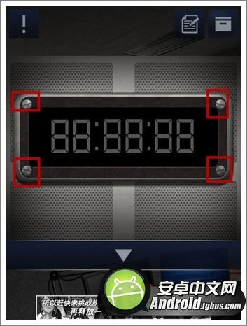 3、點擊門上方的電子時鐘,再次用金幣將四顆螺絲卸下。將剛才獲得的芯片插入右邊的缺口,屏幕亮起之後得到一組英文為ESCAPE;