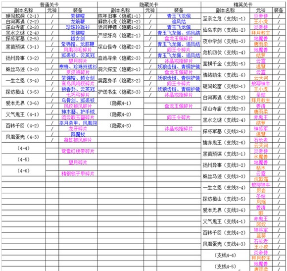 仙劍奇俠傳手游紫裝元神掉落關卡大全一覽: