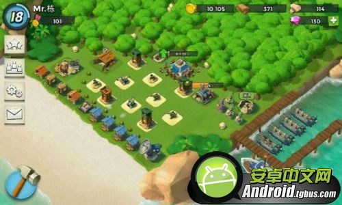初期地圖還比較小,玩家必須盡快升級雷達,開地圖,盡早發現更多的資源島。然後通過戰斗學院提升兵種的種類和等級,去搶資源島。