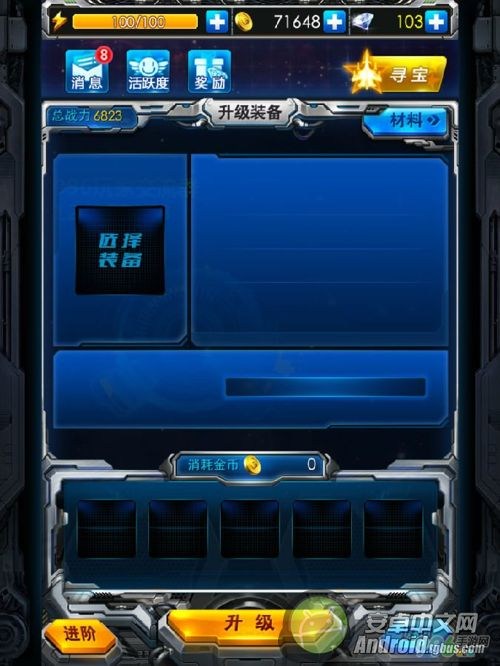 2、放置好材料之後,點擊選擇裝備把裝備換成材料第二格要升級的裝備,然後把材料下面的60級裝備去掉,然後點擊強化,自己吃自己不用材料升級,爽歪歪。不過每次操作成功都會閃退。