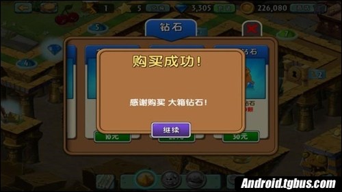 關閉了支付頁面之後,你就會看到彈出了“購買成功”的提示信息,然後再回到游戲界面,你會發現鑽石果然都已經買好了,接下來你就好好去玩游戲吧。