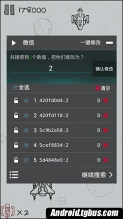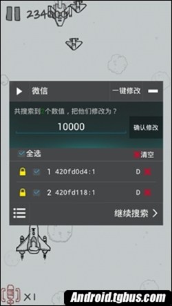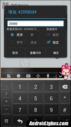 8.這時長按那個內存地址,進入修改面板,並在輸入框中輸入一個適當的數值,然後把"保存""鎖定"勾選,確認後回到游戲。
