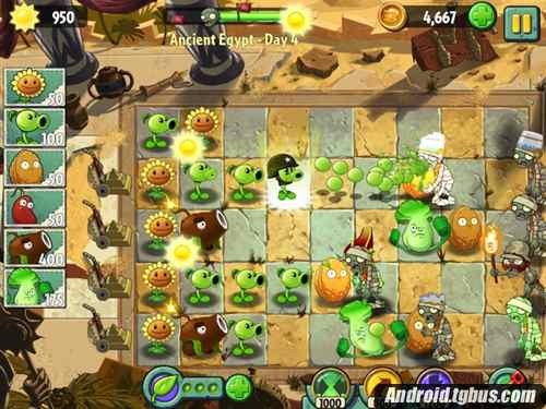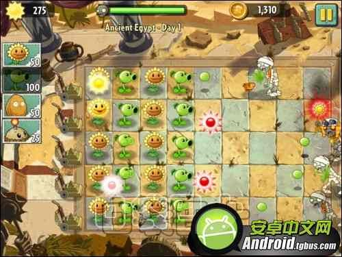 相對於1代,植物大戰僵屍2增添了更多的游戲場景,比如埃及金字塔,比如美國西部的劇情。此外,還增添了Plant Food(植物養料),給植物喂上一口的話……不多說,請看下圖: