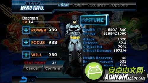 游戲中你可以操作超人,蝙蝠俠,神奇女俠,綠燈俠,或閃電俠拯救世界!每個英雄都有特殊能力的升級,包括6個主動和被動技能,超人的熱視覺,蝙蝠俠的特殊的小工具,神奇女俠的金黃真相Lasso,還有功能強大的組合攻擊。游戲的打擊感十分出色,而且每個英雄都各具特點,技能也是讓人眼花缭亂,合理搭配每個英雄的屬性和技能點會讓你體驗不一樣的爽快。想要集齊所有英雄卡片就必須用每一個角色打通全關。下面就讓我們來依次認識一下每個英雄。