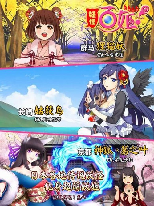 伴隨著妖怪題材手游在國內掀起的熱潮,日本原產的正宗妖怪題材代表作《妖怪百姬》簡體中文國服版正式上架公測。本作是由最火爆的日系二次元游戲《艦隊Collection》開發商日本角川打造,是其繼《艦娘》後的美少女系列新作,將古代日本各地的妖怪幻化成萌萌的美少女。玩家在游戲中將妖怪美少女一起展開心跳加速的冒險之旅,組建妖怪後宮,體驗日本正宗妖怪題材的魅力!