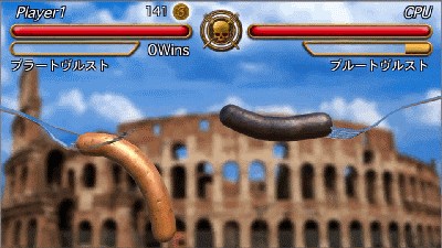 但是,香腸不想長頸鹿那樣會自己會戰斗,所以這個時候也是要考慮如何讓香腸進行戰斗,怎樣進行戰斗的問題。這個時候團隊裡也想了很多的點子,包括用香腸來代替長頸鹿的脖子亦或是縱向排列或是用繩子鏈接,想了半天最後還是采用用叉子插著香腸進行戰斗,換言之其實是人用手拿著叉子來進行戰斗的樣子。