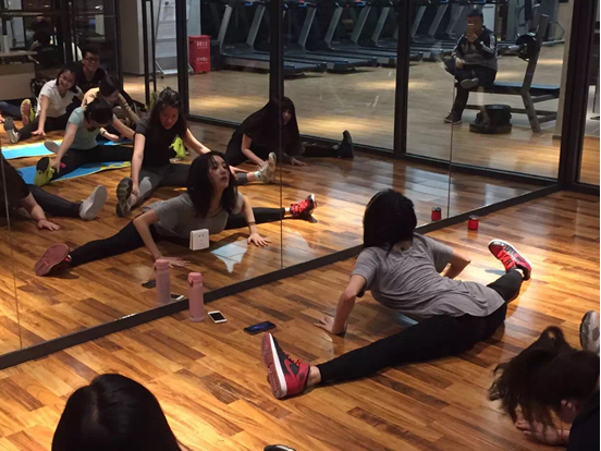 忘記了時間,忙碌了一整天,該來舒展一下身子了,這家公司每天6點半下班後有健!身!課!並且每天都不一樣!據公司內部員工說,爵士舞老師美得不要不要的,吸引了很多公司的男員工去鍛煉。(看到偷拍老師的某男同事了麼)