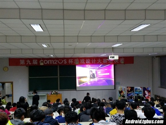 這是一個風雨交加的夜晚,2016年4月16日19點,第九屆Com2uS杯游戲設計大賽總決賽在哈工大威海校區如期舉辦。狂風大雨沒有澆滅同學們的熱情,大課階梯教室座無虛席。迎賓,禮儀,嘉賓,主持人,各個細節到位,處處都透露出同學們對這次活動的專注和重視。12組選手帶著他們的作品和講演,向台下觀眾展示了他們的日夜奮戰的成果,現場觀笑聲掌聲不斷。