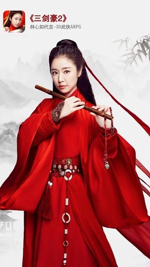 一身紅衣,一頭長發,恬靜甚至柔弱的表情,讓每一位看到她的人,都會覺得這是一位小家碧玉。然而搭配一把七尺長劍,握劍的手中帶有精准的護腕,可見她又是一位長與劍相隨的女人。制作精良的兵器除了考究的劍柄外,還搭配了一條漂亮的劍穗,加上發髻上飄揚的紅絲帶,林心如打造的這位女俠形象,讓照片曝光之後就在很多人心目中留下了深刻的印象。