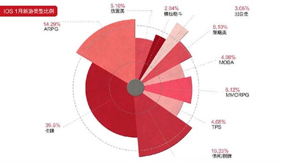 在制作周期和難度上更友好的卡牌類手游依舊占據新游主流,但制作周期長、難度大的TPS及MOBA類卻也添了8款新作,除主流的ARPG和MMORPG之外,相對平均的類型分布情況也喻示著2016年各手游廠商在細分領域將持續發力,在經過了2014年之前同質化手游扎堆、2015年新品類不斷出現之後,2016將真正迎來手游細分化及精品化。