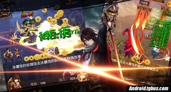 英雄不問出處,戰斗只看手速。炫文科技自主研發的點擊互動式玩法。用你手指的觸碰,就能讓你的英雄活起來。可以摸到的戰斗打擊感,點擊越快,角色戰斗越快。瘋狂的點擊,讓不良情緒瘋狂的發洩。還有獨特的無血戰斗模式,讓你心無旁骛,專心於戰斗。忘掉眼前的煩惱。更有傳說級武器相伴,太極環,鴛鴦佩,無鞘扇。神器在手,天下我有。