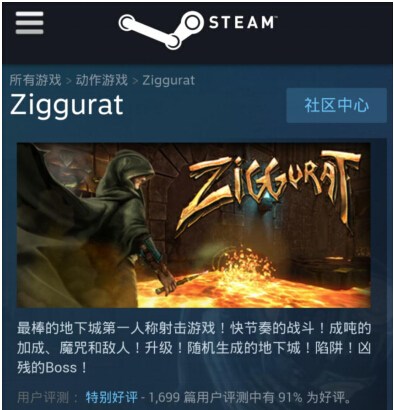 《通靈塔(Ziggurat)》是一款經典Roguelike類型游戲,憑借充滿隨機性的游戲進程,以及Roguelike類型游戲中少有的精美畫質與獨特的FPS玩法,在steam上的玩家評價極高,好評率達91%。