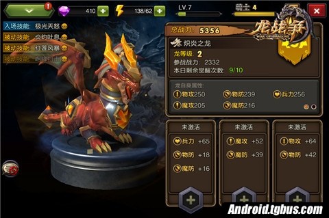 當玩家通過第一章後你手中的強化材料應該足夠對龍進行第一次升級了,龍升級後各方面屬性都會提高,前幾級還能解鎖新的技能,不過升級龍需要進行龍力升級的戰斗,如果實力不夠可是打不過龍魂的。