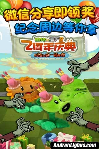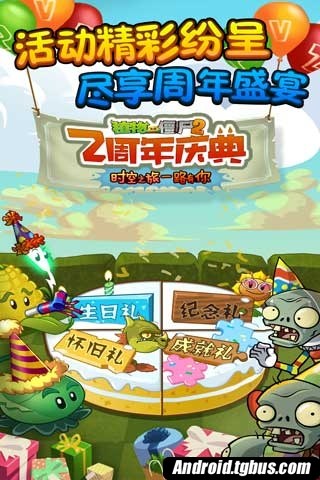 陪伴玩家們度過了無數歡樂戰斗時光的《植物大戰僵屍2》今日在各大安卓平台推出特別企劃的兩周年紀念版本。僵屍們戴上五彩生日帽,甚至把自己打扮成巨大禮品萌萌登場,玉米投手、菜問等植物花枝招展地唱著生日歌,要為玩家帶來滿滿驚喜,你一定不能錯過!