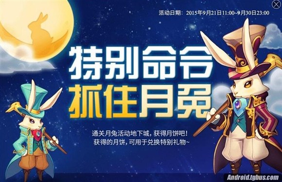 ·活動內容:活動地下城中將會出現【月兔籁】和【月光紳士籁】等兔子類怪物,通關地下城,即會掉落道具[月餅],使用月餅可以在活動商店中兌換獎勵。