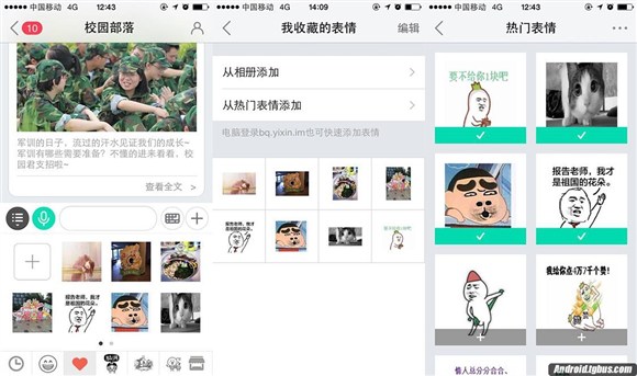 易信貼圖又出新玩法,可從本機相冊多選添加的自定義表情省時省力。點擊表情列表裡的心形圖案,選擇“從相冊添加”或“從熱門表情添加”,就可以一鍵新增多個自定義個性表情貼圖,表達自己的各種心情。