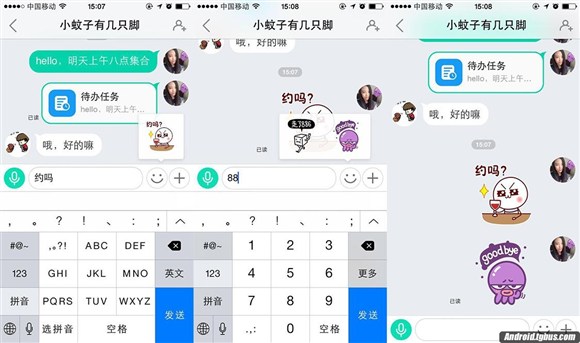 特定詞快捷表情功能更是省心。只要下載易信裡的各種貼圖表情包,然後打出“再見”、“bye”、“88”、“加油”、“晚安”等特定詞,相應的快捷表情就會實時出現。隨手點擊,萌萌哒貼圖就可以完美傳達你的各種心情,更有“腦洞劇場最終版”貼圖出沒。