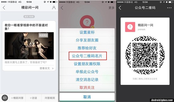 從快捷省心出發,易信公眾號新增了二維碼名片入口,只要點開公眾號右上角按鈕,就可以找到公眾號二維碼名片,掃一掃即可實時關注。