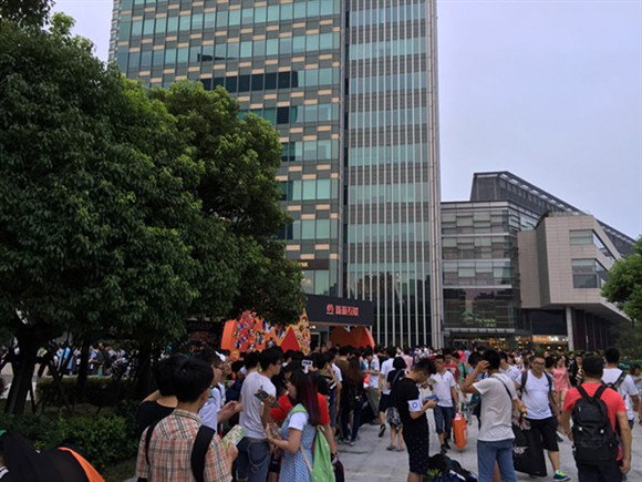 連續四天,在ChinaJoy展當天臨近結束之時,在嘉裡酒店的廣場就突現一條排成長龍的隊伍。這裡沒有美女、沒有嫩模,現場氛圍卻火爆十足。這是新游互聯的戶外展台,也是CJ期間