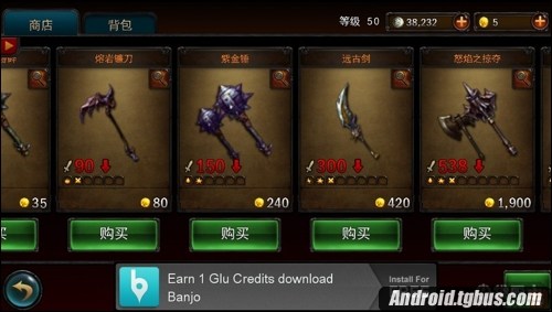 每個游戲都有商城,可惜永恆戰士2的商城對於稍微想動些手的玩家來說根本沒有什麼意義,或許有的手動黨在看到商城中各式各樣的黃金武器裝備心中不免癢癢,但是希望大家在體驗游戲前就被這些所謂的黃金武器沖昏了頭腦。